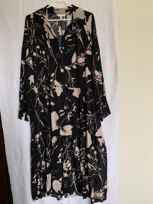 Стильное платье макси из натуральной вискозы. Мягкая ткань. Модный цветочный принт..Внизу оборка. На размеры 16/44-18/46. П.о.груди 59 П.о.стегон 82 П.о талии 57 Рукав 75 Длина платья 126 ● Обмену и возврату нет, перед заказом проверяйте все замеры. По запросу делаем дополнительные фото. ● Оплата на карту Приватбанка 100%, наложенного платежа нет. С Безопасной оплатой НЕ РАБОТАЮЩИМ. ● Отсылка Новой или Укр-почтой.