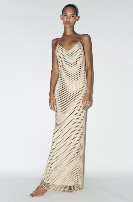 Неперевершена довга сукня стрази камінчики блискуча сітка відкрита спина