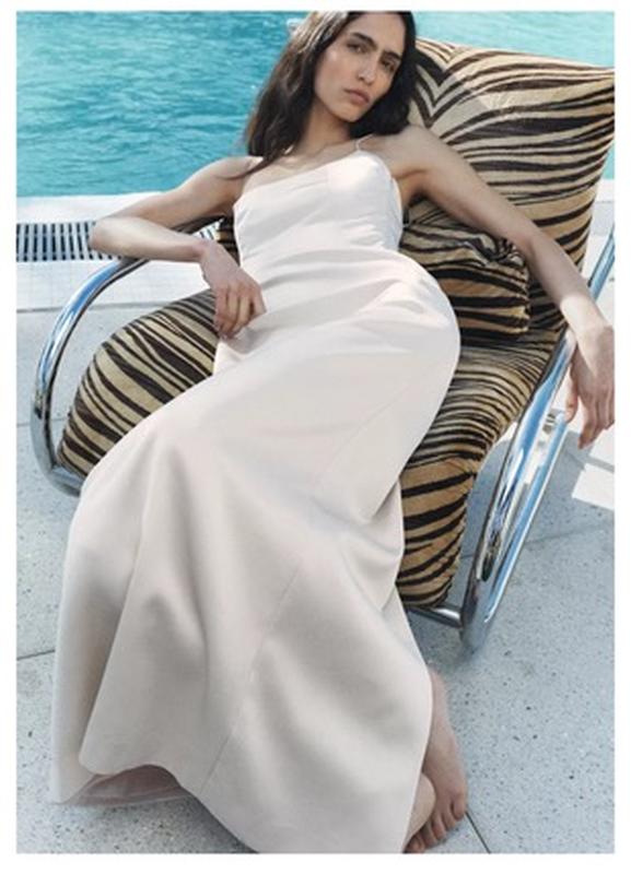 Сукня сатинова Zara довга максі в перлинному кольорі на підкладці, плотна тканина, гарно тримає форму.