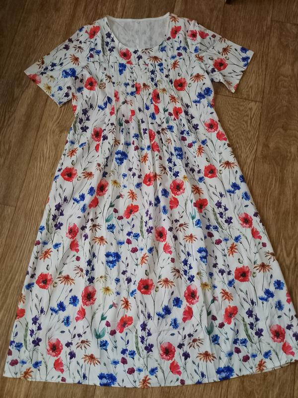 платье в цветочный принт. Размер указан S, но лучше будет М-L