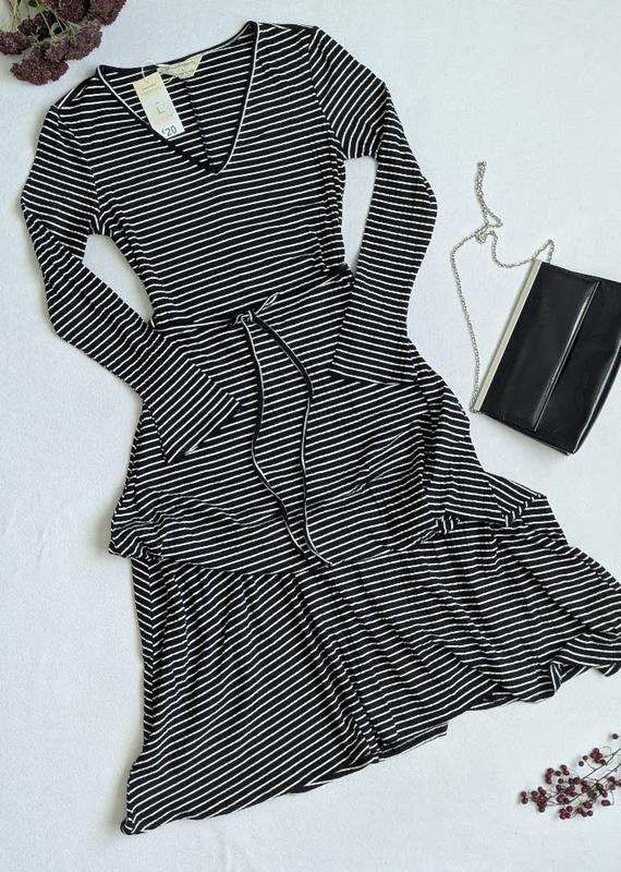 Длинное трикотажное платье А-силуэта с длинными рукавами, расширенными к низу. Имеет V-образный вырез, подчеркивает талию тонким пояском. Размер L, новая, с биркой, бренд - Primark.