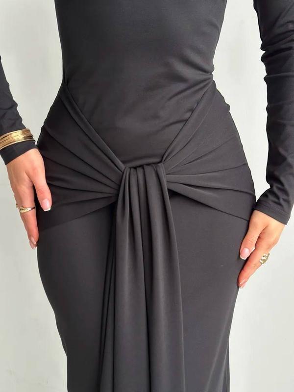 💫 Новинка сезона - платье с узлом 💫 Модель: 430 Ткань: микро масло Цвета:черный,шоколад Размеры: 42-44,46-48,50-52 Элегантное длинное платье - идеальный выбор для уверенных женщин, любящих лаконичную роскошь. Модель имеет облегающий крой, подчеркивающий силуэт, и акцентный узел-состав на талии, который визуально формирует «песочные часы». Длинные рукава и округлый вырез добавляют сдержанности, а легкое расширение книзу создает изящную динамику. Ткань эластичная, приятная к телу, не просвечивается и красиво держит форму. Идеально подходит для вечера, фотосессии или стильного выхода в город
