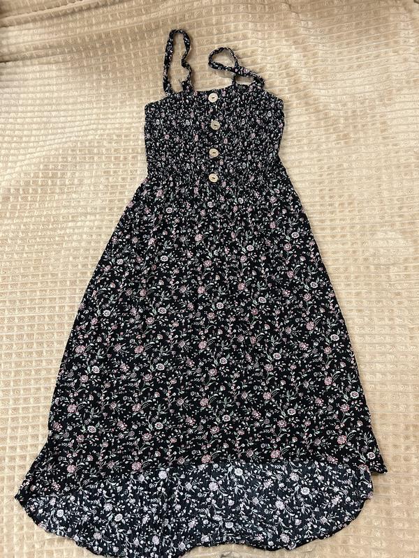 Жіноча сукня-сарафан. Літній варіант, на бретельках. Спереду коротша, ззаду довша.