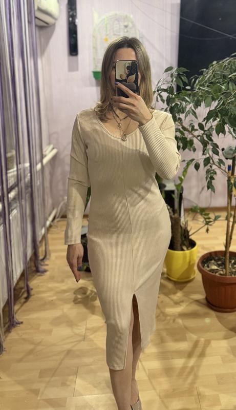 Довга сукня в рубчик з гарним розрізом спереду, тканина приємна до тіла, підійде на розмір М