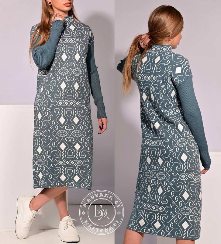 ❤ ЗИМОВА МАКСІ СУКНЯ ❤ Новинка! Шикарная зимняя макси-платье с орнаментом отличного качества. Очень приятный к телу плотный вязаный трикотаж. Горловина – стойка. Силуэт - трапеция, длина - макси. Очень женственная модель. Платье теплое и очень удобное. Оригинальный орнамент добавляет модели особый шарм. Выглядит просто невероятно. Модное сочетание цветов. Материал отлично тянется, идеально садится по фигуре. В наличии несколько разных цветов. Размер универсальный, подойдет идеально от 42 до 48 размера. Спешите, количество ограничено! Цвет - бирюзовая ✅ Размер - универсальный Длина - 101 см Плечи - 50 см Длина рукава - 50 см Внутренняя длина рукава - 47 см Ширина - 49 см Ширина внизу - 53 см ВСЕ НАШИЕ ТОВАРЫ ➽➽➽ https://shafa.ua/uk/mmber/time_trend С радостью ответьте на ваши вопросы! Отправляем в день оплаты удобным для вас способом!