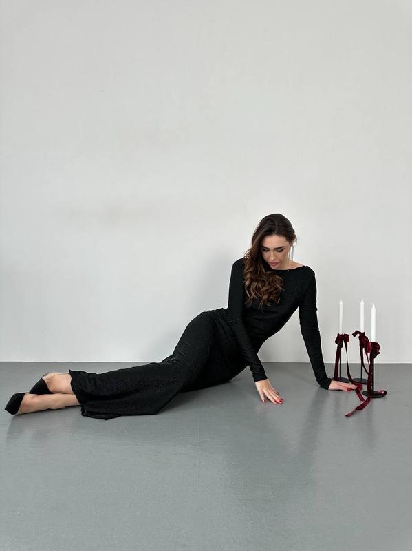 Вечірня сукня Модель: 1605 🤍Тканина: дорогий трикотаж з люрексом (Туреччина) Розмір: 42-46 (one size) Колір : чорний Супер якість за низькою ціною Чарівна сяюча максі сукня з відкритою спинкою. Акцентне збирання вигідно підкреслить фігуру. В цій сукні Ви точно будете у центрі уваги. М’яка еластична тканина з напиленням люрексу. Люкс якість.