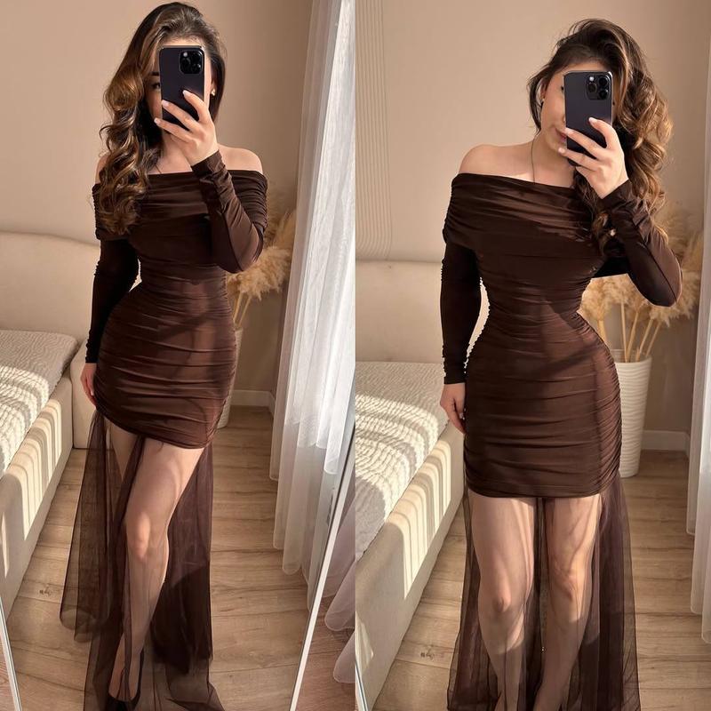 🔤🔤🌸 🔤🔤🔤🔤🪷 # 642 🌐Сукня, у якій ви точно не залишитесь непоміченою 🌐 💐Вишукана вечірня сукня з мікродайвінгу та повітряною сіткою 💐 Стильна та спокуслива модель, що підкреслює лінії тіла та створює елегантний силует. Верх виконаний з еластичного мікродайвінгу, який м’яко облягає фігуру, а прозора спідниця із сітки додає образу легкості та шарму. ▪️Тканина мікродайвінг та сітка ▪️Розміри: 42–44, 46–48 ▪Кольори: шоколад, бордо, чорний