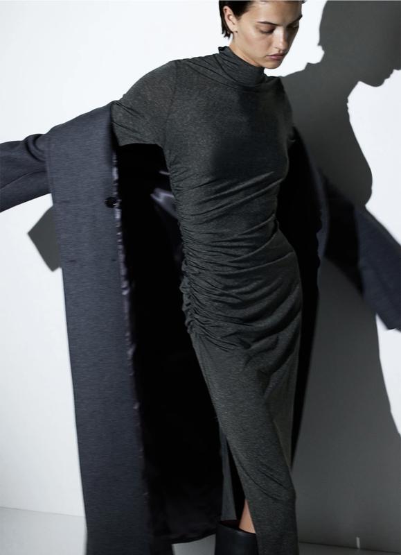 Красивое длинное платье с асимметричной драпировкой H&M. Платье выполнено из стрейчевой вискозы, достаточно плотного, красиво подчеркивает фигуру, при этом, скрывает недостатки фигуры. Может подойти как на каждый день, так и на какое-нибудь событие в любое время года. Размер 34 XS ОТ. 62 - 66 ОГ. 78 - 82 О стег. - 86-90 Длина 126 Длина рукава 64 Платье одето на манекен в размере S, поэтому облегание плотное