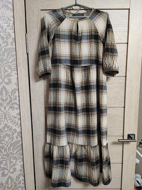 В идеальном состоянии, размер М-L. Длина 120 см, рукав 40 см, грудь 50 см.