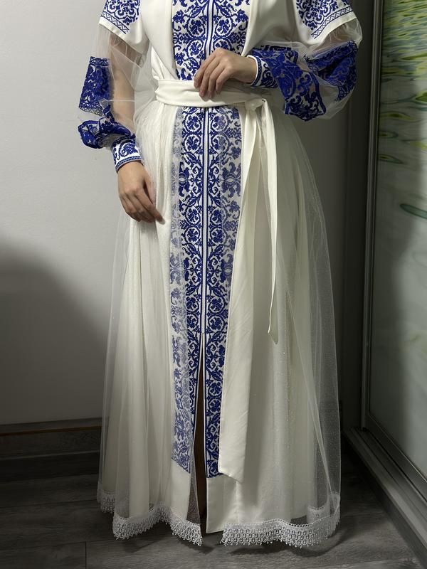 Продаю вишиту сукню з фатином Була вдягнута один раз. В хорошому стані. Розмір 42-44. Додатково пояс та фатин з блискітками.