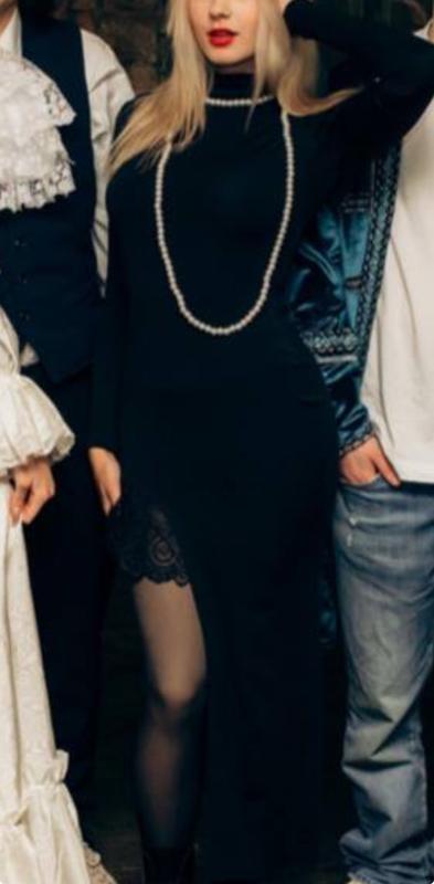 Сукня із дуже приємної якісної тканини , відкрита ніжка, прикрашено мережевом , дивиться шикарно