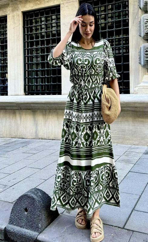🌿Шикарна сукня з натурального матеріалу, віскоза. 🌿З широкими рукавами 3/4, під пасок . 🌸🌿В українському стилі з етнічним принтом 🥰🌸🌿 Аутлет. В ідеалі! Підійде по розміру на 48,50,52 На L XL XXL 🔥👌