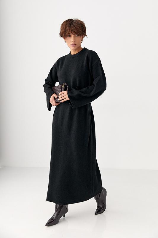 Длинное вязаное платье свободного фасона – это комфортная и универсальная модель, выполненная из мягкой однотонной вязки. Она имеет круглую обработанную горловину и опущенные плечи, создающие расслабленный силуэт и придающие платья современный минималистичный вид. Широкий прямой крой и объемные рукава обеспечивают максимальный комфорт и не стесняют движений. В комплекте есть вязаный шнурок, который можно завязывать на талии для создания более акцентированного силуэта, или носить платье без него для абсолютно свободного вида. Прямой низ аккуратно завершает модель, делая ее стильной и лаконичной. Замеры изделия Длина переда изделия, см 130см Ширина под проймами рукавов (над грудью), см 57см Длина рукава от горловины, см 65см Длина рукава по внутреннему шву, см 46см Ширина по стегнам 54см Ширина по талии/поясу, см 54см Характеристика товару Страна Китай Тканина Вязка Состав ткани 55% бавовна, 25% поліестер, 10% акрил, 10% вовна Параметры модели 86*60*92 рост 173 Универсальность Замеры одинаковы для всех размеров - особенность фасона модели Размер на фото ONE SIZE