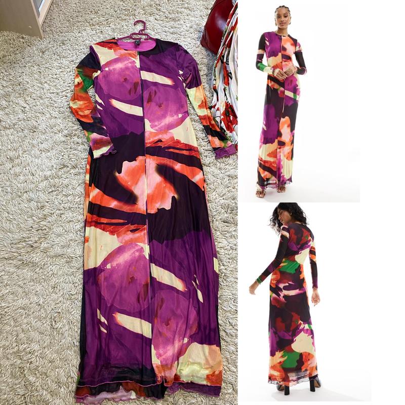 Шикарна довга сукня гольф в принт , тканина сітка і підклад . Дуже гарна якість. Гарно тягнеться і гарно тримає форму Стан нова,але без бумажних бірок Розмір вказано 10,можна і 8 ,12 На фото на 12 і зріст 170 Заміри Плечі 40 Рукав 61 Пог 43-60 Пот 40+ Поб 50-65 Довжина 142