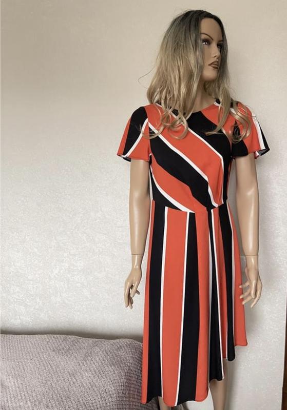 сукня з асиметричним низом цікавий принт та фасон Довжина від плеча до краю що довше 122 см, по спинці по середині 115 см, ПОГ 55 см, ПОТ 47 см