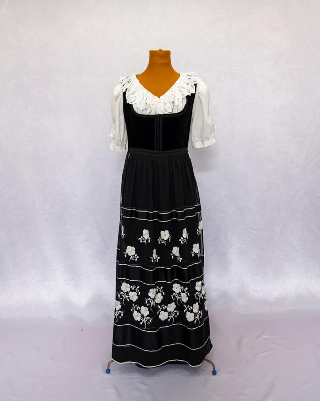 Платье-дирндль с бархатным лифом и вышитым фартуком 📍Размер L-XL Цвет – черный без блеска, вышивка белая 📐МИРКИ: Плечи - 38 см Полуобхват груди – 53 см (линия под руками) Полуобхват талии – 46 см Длина корсетной части – 41 см (от плечевого шва до шва по талии) Длина юбки – 100 см (от шва по талии) 🏷МАТЕРИАЛ: Бирок отсутствует. Подкладка, вероятно, хлопковая. Передник пришит спереди. Застежка-молния спереди по лифу Внешний слой ткани по юбке и фартукам полупрозрачный. Есть плотная подкладка. ❗Рубашка опубликована отдельным товаром! ♻️Состояние – б/у, отличный, не яркий, без дефектов Art. FVD-033 📦📬Отправка "Новая почта" или "Укрпочта" за счет заказчика. Передплата 100%. #female #vintage #dress #платье #black #sizeL #sizeXL