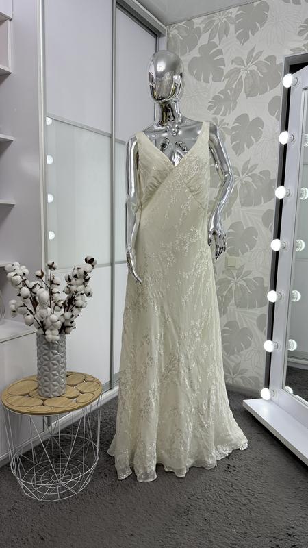 🤍 Розкішна довга сукня від бренду Monsoon, р.18, нова з бірками. Тканина в ніжний квітковий принт, який розшитий бісером та паєтками. Тканина 59% шовк, 41% віскоза, підкладка 100% поліестер. Ціна на бірці 305 євро. довжина 153 см, довжина до лінії відрізу під груди 38 см. груди 112 см. талія 96 см. стегна 128 см.
