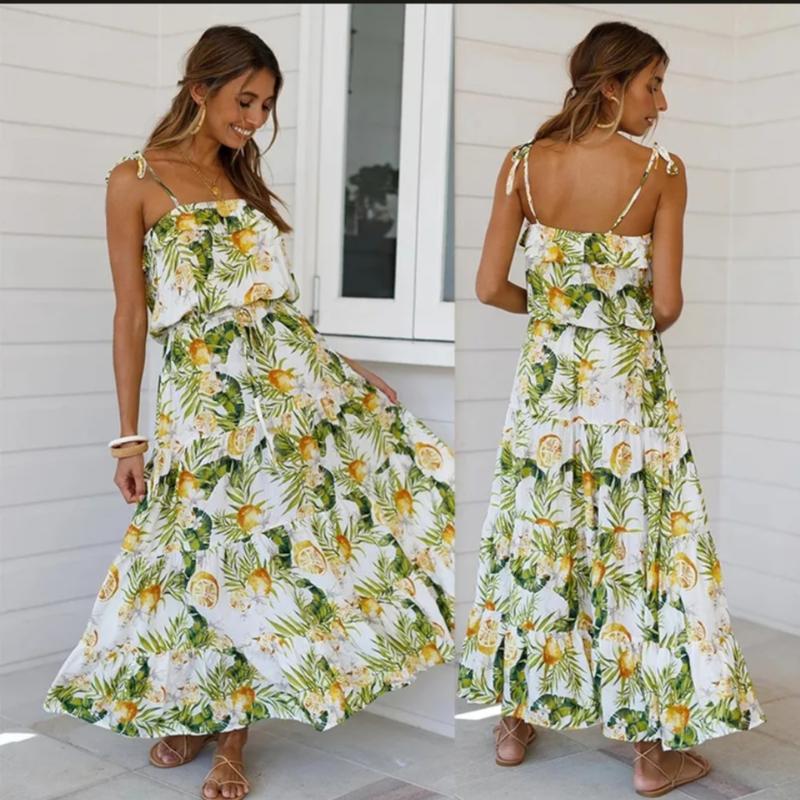Ярусное платье на поясе затягивается на пояс принт лимони