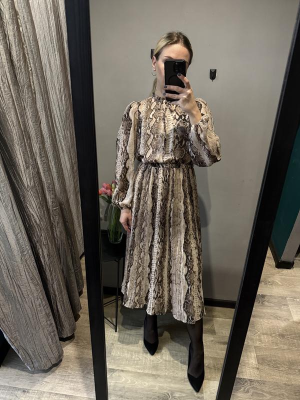 • Максі-сукня • Довга сукня в трендовий зміїний принт. На підкладці, рукава - прозорі. В талії на гумці. Підійде на розмір: XS/S Стан нової речі. Заміри: пог - 50; пот - 33 (максимум - 46); пос - вільно; довжина - 116.