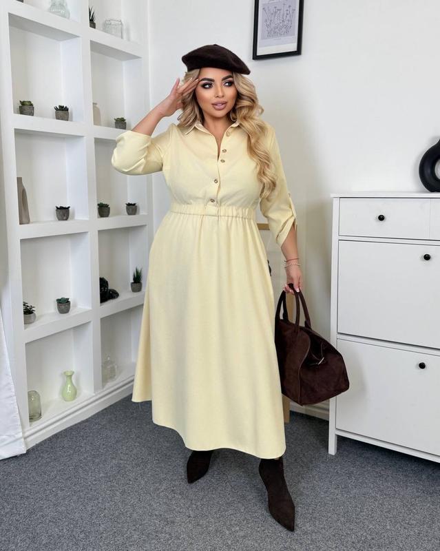 268 🆕 МОДЕЛЬ ‼️ Ідеальна вельветова сукня для стильного образу довжиною міді. Відрізна талія на резинці, застібка на ґудзиках , комірець на стійці, рукав довжина 7/8 з патом, кишені в бокових швах. 🍁ТКАНИНА: ВЕЛЬВЕТ на х/ б основі КОЛЬОРИ : ШОКОЛАД ; МАСЛЯНО- ЖОВТИЙ. РОЗМІРИ ПОДВІЙНІ: 1) 46-48 2) 50-52 3)54-56 🍁ЗАМІРИ НА СУКНЮ 46-48 розмір Обʼєм грудей 104 Талія 86+ гумка Стегно вільне Довжина ліфа до талії 46 Довжина спідниці від талії 84 Довжина рукава 48 50-52розмір Обʼєм грудей 112 Обʼєм талії 90+ гумка Стегно вільне Довжина ліфа до талії 48 Довжина спідниці від талії 86 Довжина рукава 50 54-56 розмір Обʼєм грудей 120 Обʼєм талії 94+ гумка Стегно вільне Довжина ліфа до талії 50 Довжина спідниці від талії 88 Довжина рукава 52 На моделі розмір 50-52