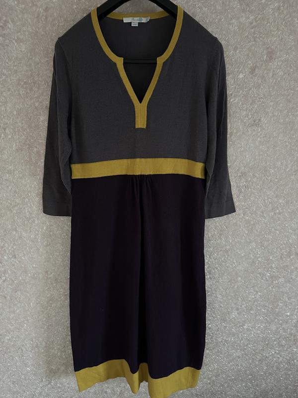 Красива тепла сукня, дорогого бренду поєднання кольорів, ( сірий, жовтий, баклажановий) Тканина тепла, мякенька, приємна до тіла ( бавовна, віскоза, кашемір, ангора) Р. 12L, стан як нове, без нюансів Довжина 115, плечі 39, рукав трьохчетвертний 50 Пів обʼєм груди 50 тягн 60 Півобєм талія 42 Півобєм бедра 58