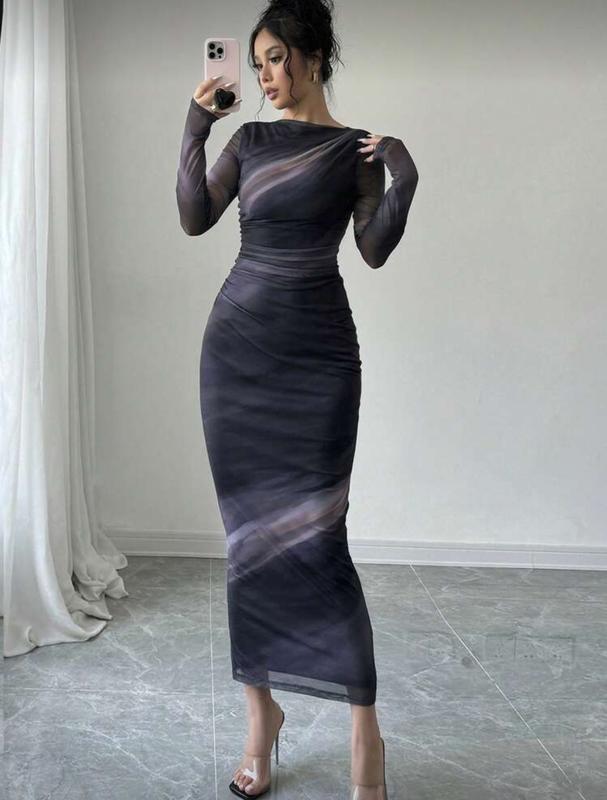 сукня довга від Shein. стан ідеальний. тканина сіточка з підкладкою. довжина- 127см; ширина під руками- 40см; ширина в талії- 32см; ширина в бедрах- 45см; довжина рукава- 62см