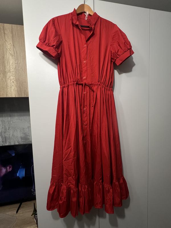 Жіноча яскрава сукня на ґудзиках та куліскою на талії