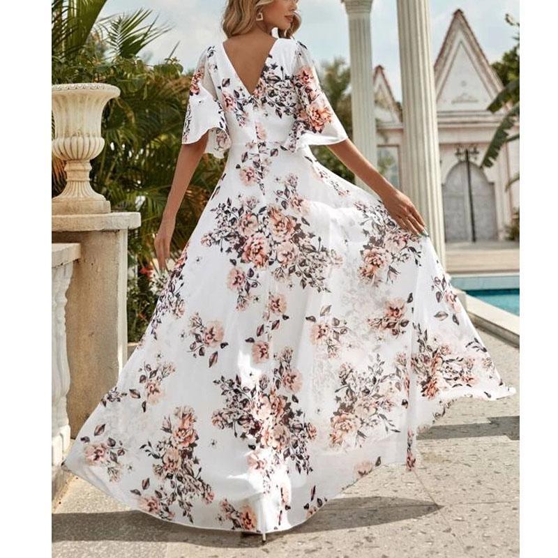 Романтична довга сукня з квітковим принтом і v-вирізом — легкість літа