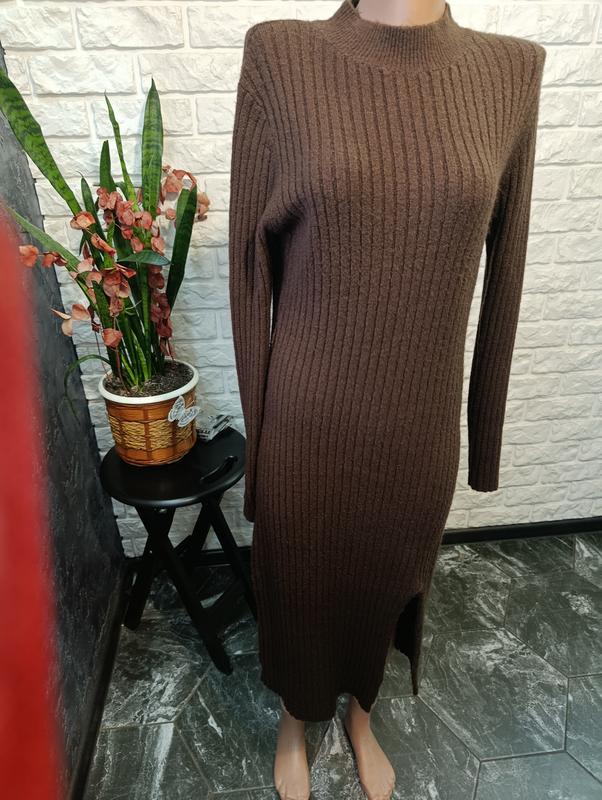 вязаное платье очень приятное на ощупь, теплое, красивого шоколадного цвета, хорошо тянется длина 115 рукав 67