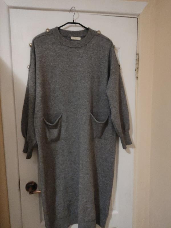 Женское, брендовое теплое платье.ПОГ 65, ПОТ 61, ПОБ 62. Длина рукава от воротника 75. Длина платья 114.
