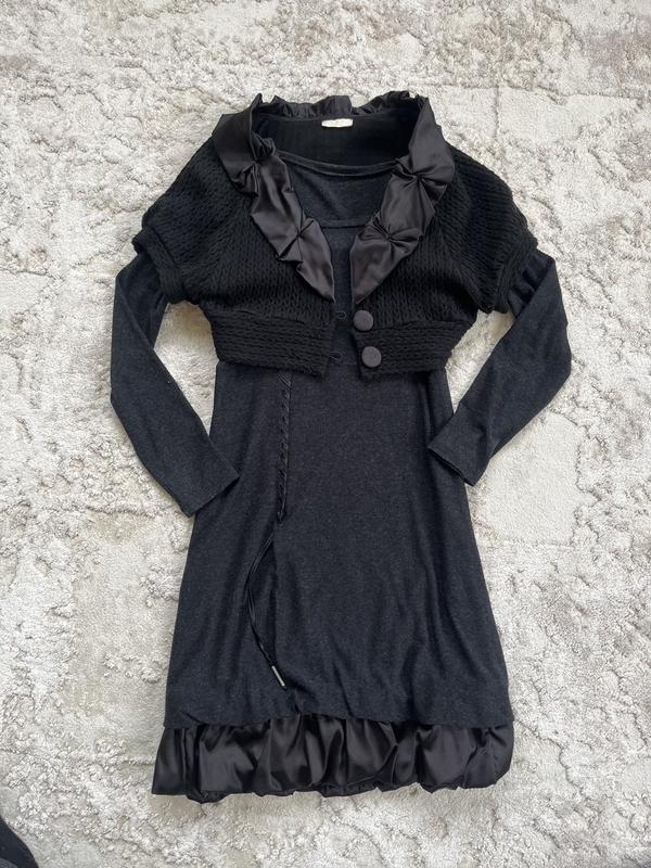 Плаття (сукня) жіноча 2 в 1, розмір 38-40, темно сірого кольору з чорними вставками