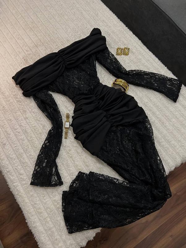 Новинка🔥 Сукня 🔹Мод: 253 🔹Размер: 42-44 ; 46-48 🔹Цвета: черный 🔹Ткань: стрейч гепюр + микродайвинг Создано с вдохновением❤️