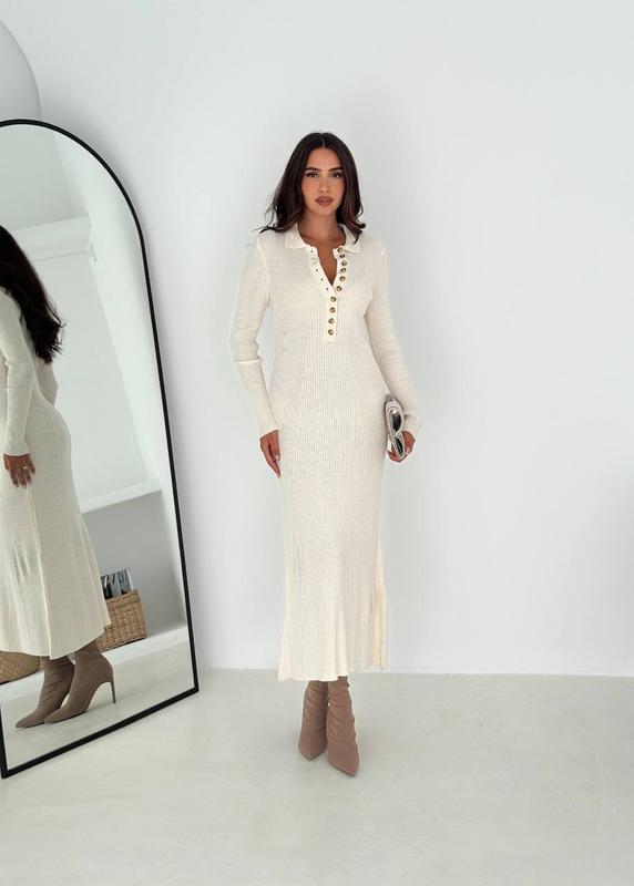 Мінімалістична сукня-поло із приємного до тіла трикотажу . • Розмір універсальний 42-46 • Склад: 50%коттон , 50% акрил Довжина 130 см • ОГ 80-100 • ОТ 60-84 • ОБ 80-110 3008