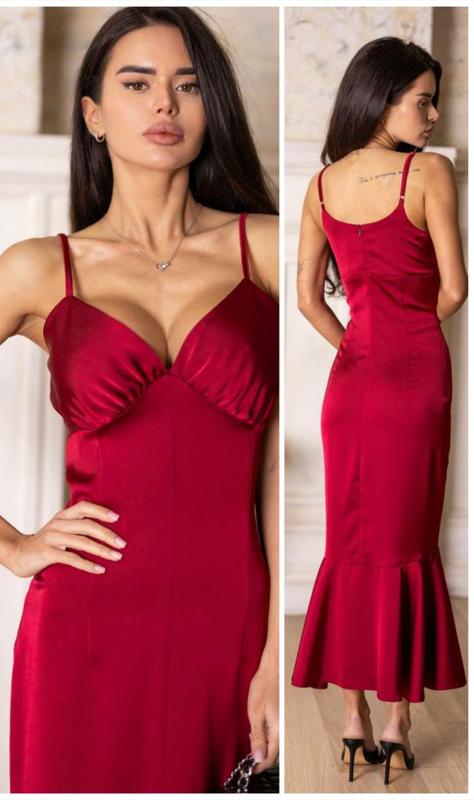 🚚Доставка: 📦Новая почта (наложка с предоплатой или полная оплата), Укр почта (полная оплата). ‼️Не нажимайте кнопку "купить", сначала нужно уточнить с продавцом наличие размера, и договариваться о способе доставки и оплаты (нажимаете "поставить вопрос")!️ Откройте для себя утонченную женственность с нашим платьем из плотного шелка. Лаконичный крой визуально вытягивает силуэт, а тонкие регулируемые бретели подчеркивают утонченность плеч. Драпированный лиф создает идеальное прилегание и красиво формирует линию декольте. Легкий расклешенный низ с кокетливым разрезом добавляет образу движения и легкой чувственности, а мягкий сатиновый блеск ткани делает платье идеальным выбором для праздника, вечер в ресторане или съемке. ▪️ Размиры: 42, 44, 46 ▪️ Цвета: красный, черный, молочный, бордовый, ▪️ Матерiал:: дабл шовк Зрiст моделi - 170 см. Отправка в течение 2-4 дн.