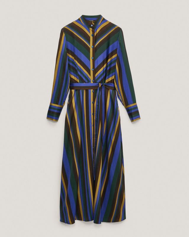 Длинное платье-рубашка massimo dutti с принтом, выполненное из шелка.
