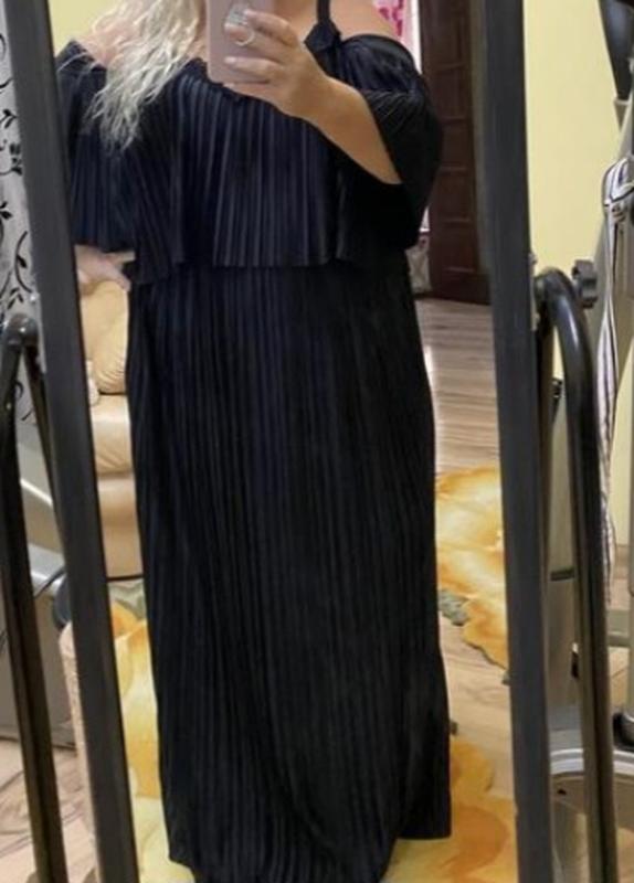 Красивое чёрное плиссированное платье в пол,размер 28,под рюшей вверху есть маечка,рюша может прикрыть хорошо полные руки,платье хорошо скрывает животик)