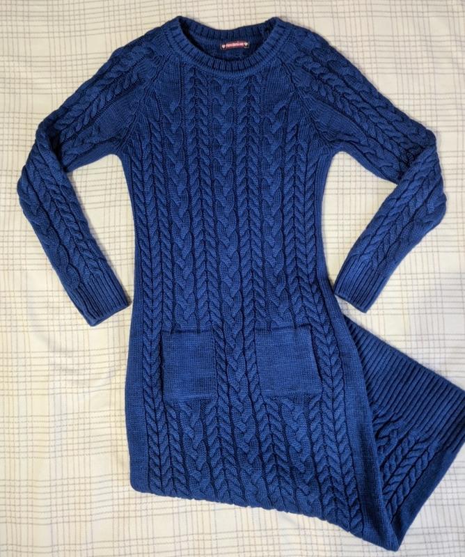 Плетеное платье миди в ярко синем цвете - стильный выбор для любого события. Удобная и элегантная, теплая и комфортная имеет разрез сзади. Размер S и подойдет и на М потому что платье эластичное. Стан идеален.