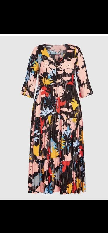Ярусна сукня Loralette. 100% віскоза. Штапель. Є кишені. Спереду розріз. В поясі куліска Розмір 30-32 ПОГ 75 ПОБ вільно 100 Плечі 48 Рукав 3/4 47 Біцепс 25 Довжина 138 Від плеча до талії 45 Висота розрізу 45 Ширина низа 150 Стан ідеальний