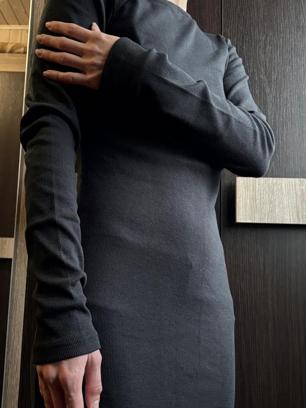 Чорна ребриста довга сукня на одне плече з рукавами Розмір: L (можна від S до L) Заміри: • Довжина: 146 см • Напівобʼєм грудей: 39 см • Напівобʼєм талії: 31 см (добре тягнеться) • Напівобʼєм стегон: 40 см (добре тягнеться) • Довжина рукава: 66 см Стан: новий, з етикеткою 🏷 640 грн