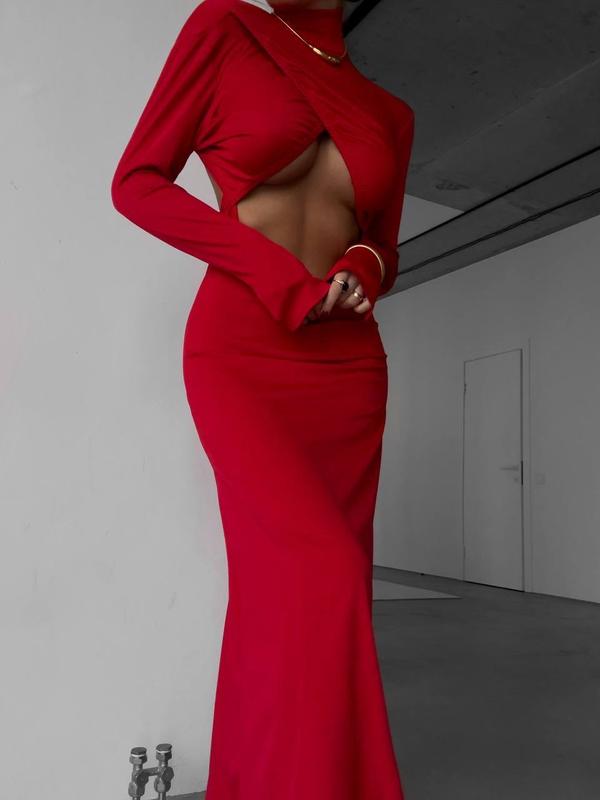 Стильна максі сукня з відкритим декольте та вирізом на спині 🔥