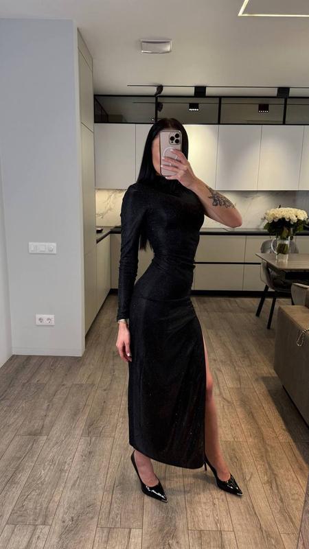 💎 Хит продажа 💎 Реал фото и видео ❤️ Сукня ▫️Мод cb 1290 ▫️Тканина - люрекс ▫️Размеры - 42-44 и 44-46 ▫️Цвета - черный 🔝Роскошное вечернее платье из люрекса, созданное для тех, кто любит привлекать взгляды🫶🏻Асимметричный крой с одним длинным рукавом добавляет образу драматичности и утонченности, а высокий разрез по ноге подчеркивает стройность и добавляет женственности. Ткань ложится по фигуре и моделирует ее