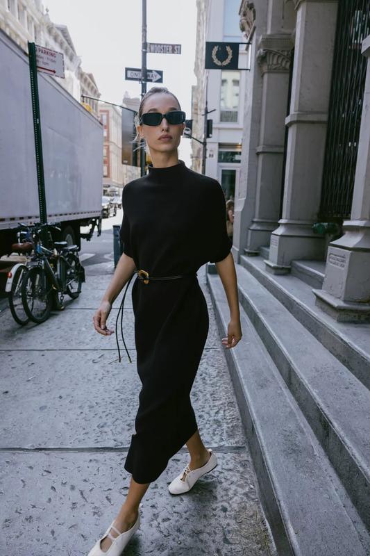 S-L розміри ЛИШЕ ПІД ЗАМОВЛЕННЯ ‼️ На XS можна брати S. Нова неймовірна сукня Zara, з бірками. Вільна сукня з високим коміром та короткими рукавами з відворотами. Деталізований ремінь зі штучної шкіри з золотою пряжкою. Склад: 64% віскоза, 36% поліестер. Відправка за 100% передоплатою 📦 (без додаткових оплат за вагу). Термін доставки залежить від розміру. Можливість доставки Вашого розміру в терміни уточнюйте в особистих повідомленнях 🤍