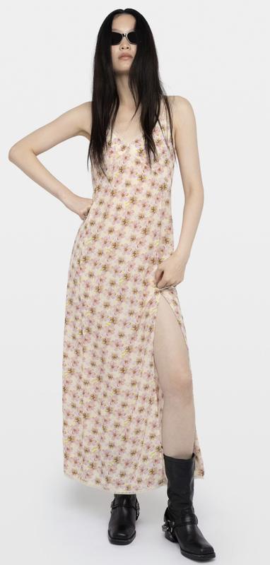 - Длинное платье Zadig - Цветы с принтом - V-образное коле - Регулируемые ремни - Вышивка крыльев на спине - Кружевная отделка