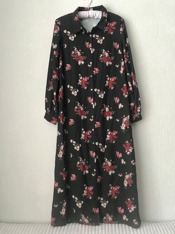 Красивое платье в цветы Прямой крой Рукава с манжетами Гудзики до самого низу Нюанс (последнее фото))