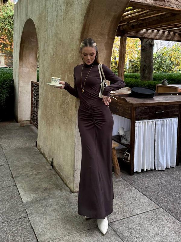Новинка😍 ▪️Артикул: 7094 ▪️Матеріал: турецька віскоза ▪️Кольори: чорний, шоколад ▪️Розміри: 42/44, 46/48 Стильна сукня з м’якої віскози, що ніжно облягає фігуру, створюючи елегантний силует. Модель має довгий рукав, високий горловий виріз і ефектну зборку по центру, яка візуально підкреслює талію. Ідеальний варіант для осінніх виходів, побачень чи затишних прогулянок із кавою. Поєднується як із класичним взуттям, так і з трендовими чобітками.