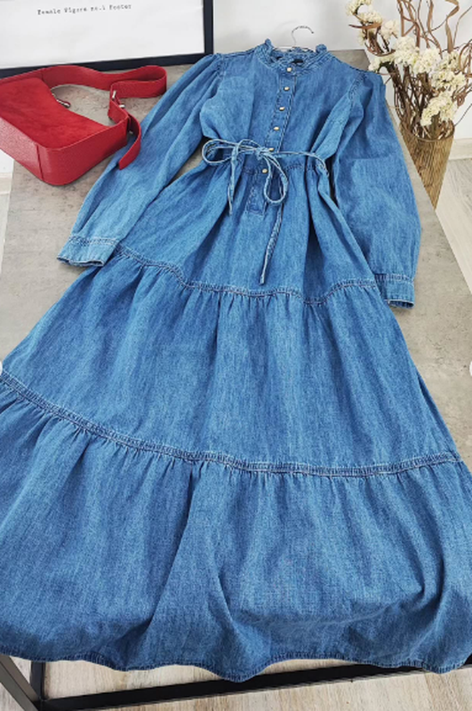 Цупкий,не грубий джинс, 100% бавовна, не тягнеться Размер UK8/36 (S) Длина 128 см Полуобхват груди 48 см Полуобхват талии 43 см, регулируется поясом Полуобхват бедер 52 см Длина рукава 66 см Ширина плечей 35 см Есть кармашки