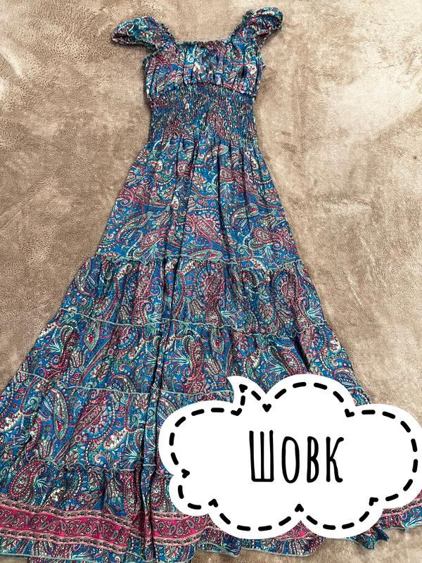 Сукня сарафан з шовку, талія на широкій резинці , глибока горловина 📍Розмір - onsize ( краще на L/M) 📍Довжина-120 📍Пог-25 ( 40) 📍Пог-36 (51)