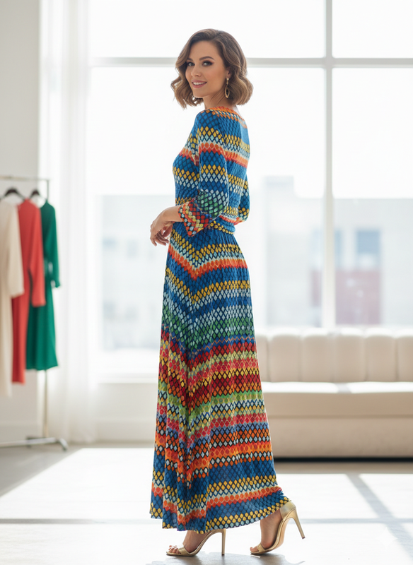 Яркая, цветная макси-платье Onjenu London в принт "луска" | Размер L (UK 16) невероятное платье от известного британского бренда Onjenu London. Если вы ищете что-то особенное, что привлекает взгляды и дарит комфорт — это именно она! Принт: Сочный, разноцветный геометрический узор (хожий на цветную мозаику или чешуйку), который смотрится очень стильно. Фасон: Женственный силуэт с акцентом на талии (драпировка/пояс), идеально скрывает нюансы и подчеркивает достоинства. Длина макси. Ткань: Качественный трикотаж (95% полиэстер, 5% эластан). материал "масло", красиво спадает, не требует глажки, не мнется — идеально для поездок или долгих праздников! Производство: Made in France (Франция). Стан: Размер: * UK 16 / US 12 / FR 44 (идет на наш 48-50, L-XL). Особенности: рукав 3/4, вырез лодочкой, эластичная талия с драпировкой, визуально делающая фигуру стройнее. Платье очень универсальное: подойдет как для торжественного события, так и для ярких будней. Цвета очень насыщенные, не вымываются после стирки.