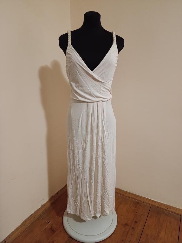 Платье стильное брендовое,молочного цвета, на бретельках,размер М, с V- образным вырезом на спине. Замеры: полуобхват груди 42, длина 120