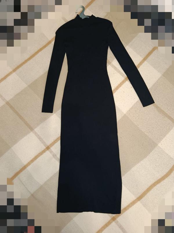Длинное черное платье в рубчик идеальное состояние, но есть ДЕФЕКТ на горловине, немного распустились нити, немного зашила якісна тканина, не кошлатится размер М, можно и на s красиво тянется, удобно ходить сзади разрез состав указан на этикетке (включена фото) Длина платья 133 см длина рукава 65 см пот 30, тянется примерно до 47 см пост - свободно потому что очень хорошо тянется